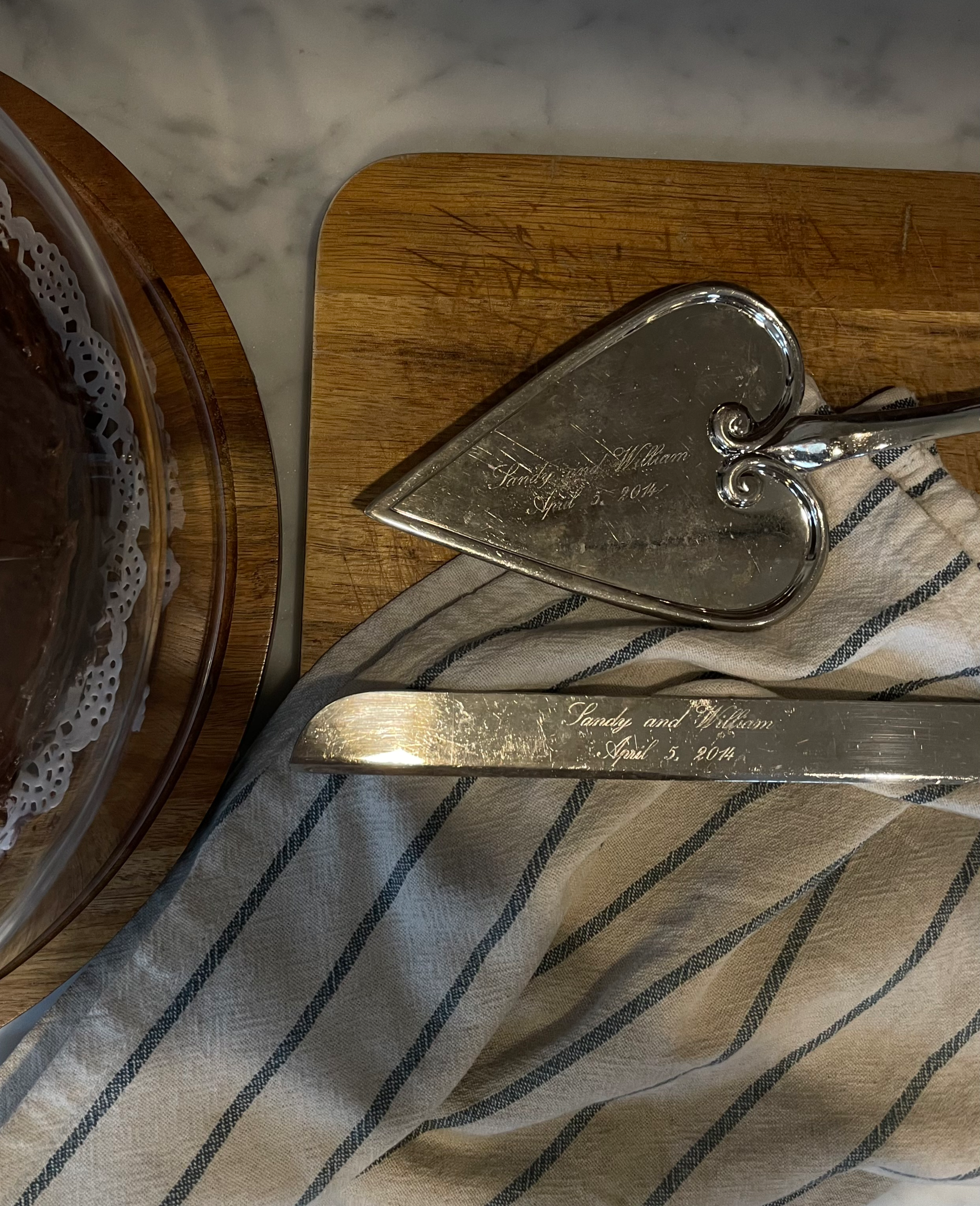 A few months before we married, I went to a wedding shop in the Bronx with my mom, where my parents gifted us a personalized cake server set. Since then, we’ve used it to cut cakes for birthdays, anniversaries, and even on a random afternoon when I suddenly decide to bake.